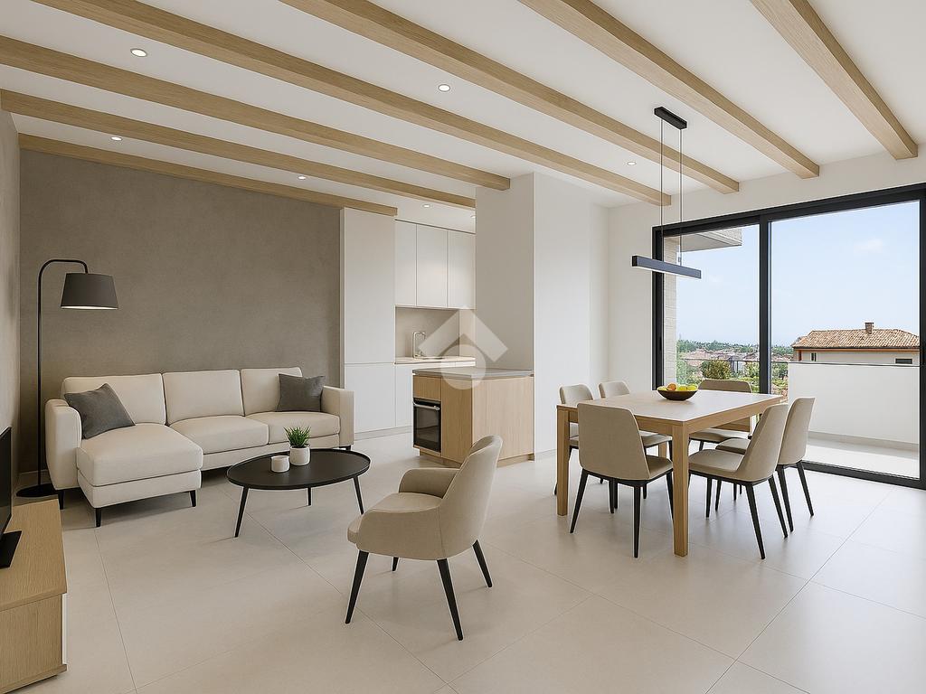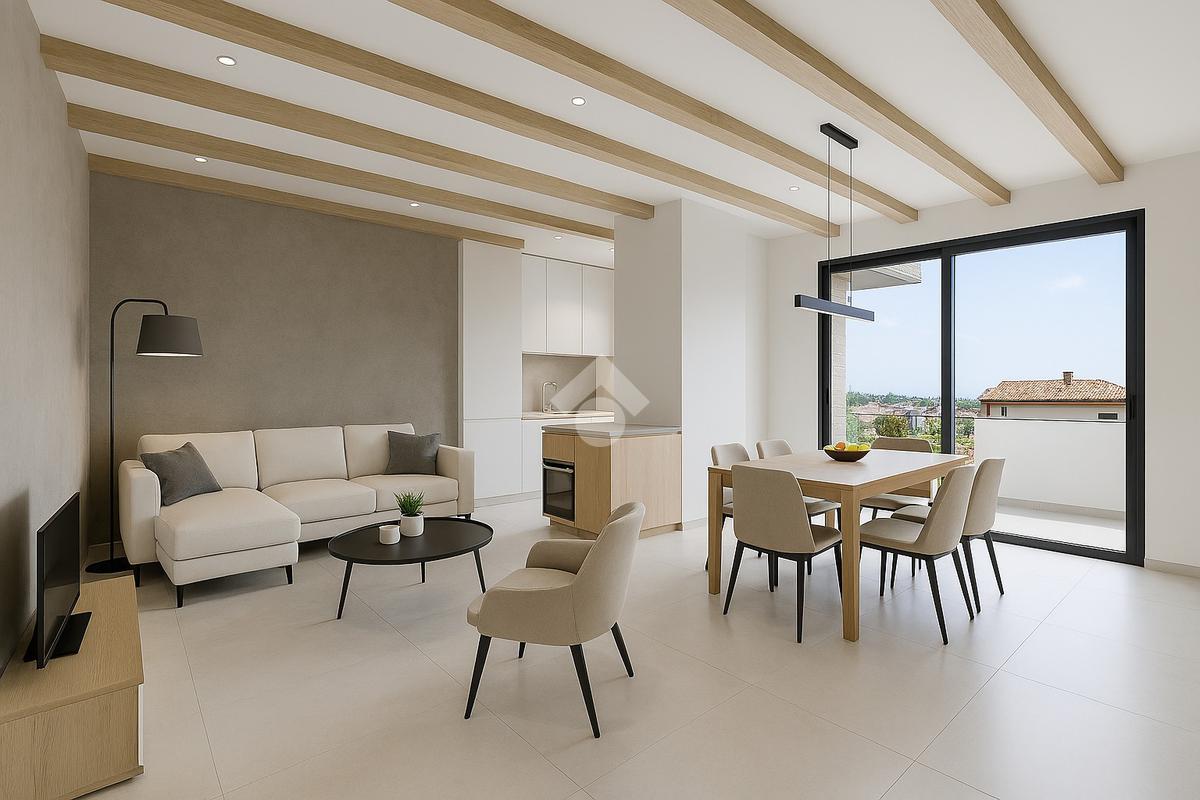 L’immobile si distingue per l’equilibrio tra design contemporaneo e funzionalità degli spazi. L’ingresso conduce a un ampio salone con cucina living, un ambiente luminoso e ben proporzionato, pensato per coniugare rappresentanza e comfort quotidiano. Dal salone si accede a un terrazzino a livello che garantisce continuità tra interno ed esterno.