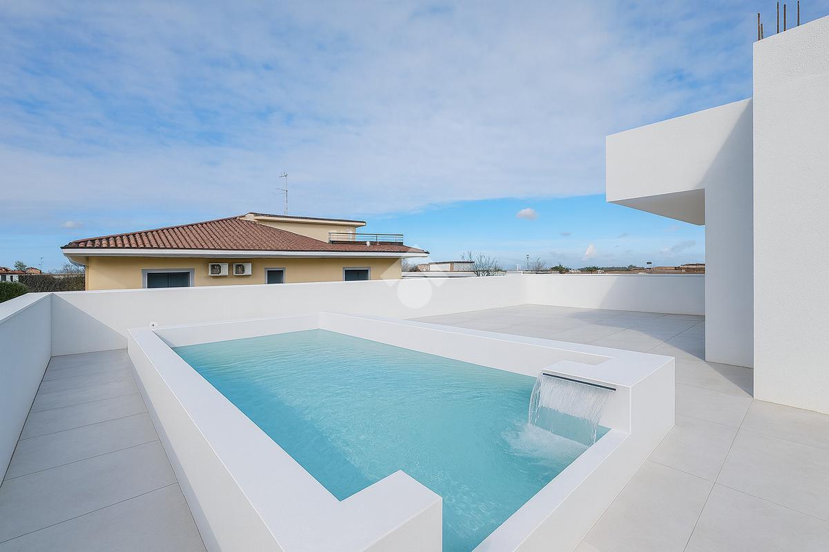 Elemento centrale della proprietà è l’ampio terrazzo panoramico, uno spazio di notevole metratura che valorizza l’abitazione e ne amplia la vivibilità. La presenza della piscina privata conferisce ulteriore esclusività, offrendo un’area riservata dedicata al relax.